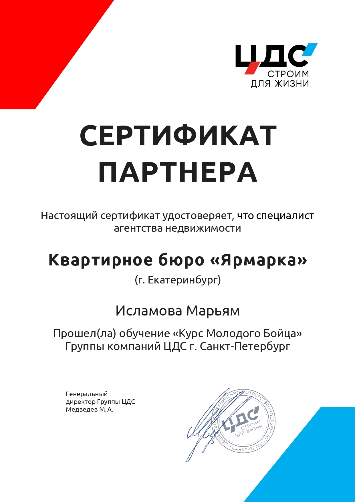 Хочу выразить огромную благодарность Марьям в продаже комнаты и покупке квартиры, быструю подготовку всех необходимых документов для сделки. Огромное спасибо за организованность, оперативность работы, профессионализм!!!